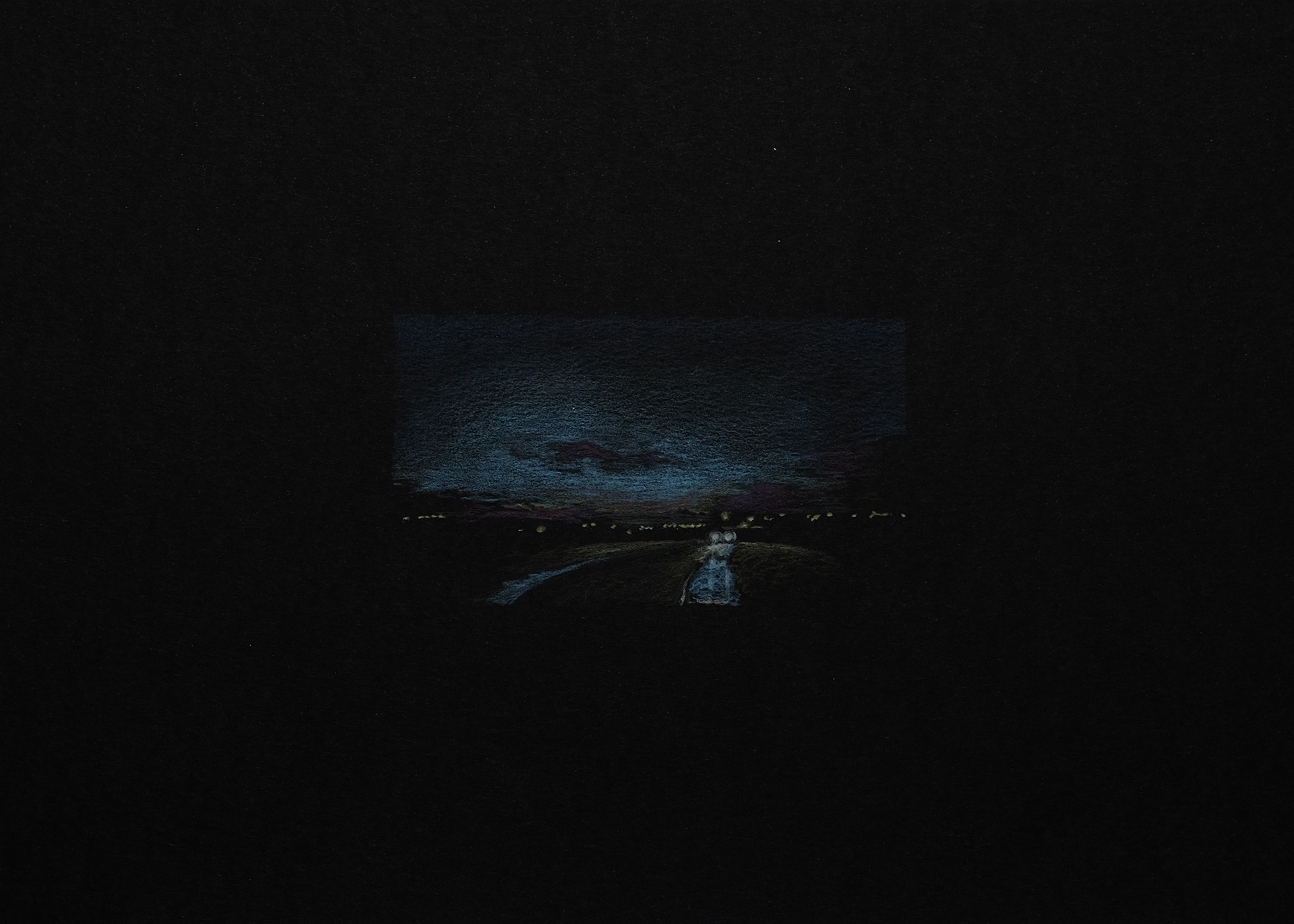 2024 - Kleurpotlood op zwart papier. Formaat: A4